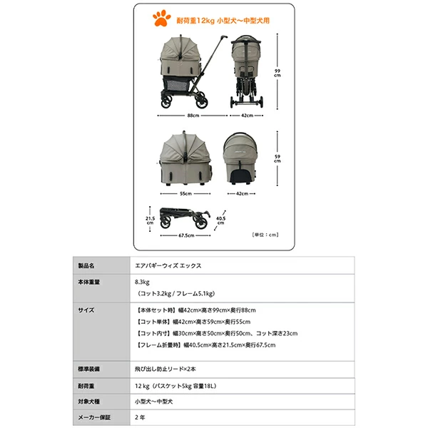 エアバギーウィズ エックス|おしゃれ&快適なペットカート