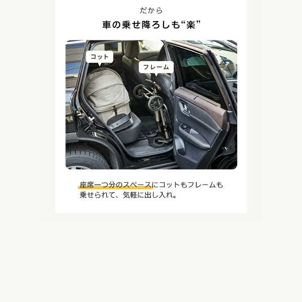 コット(乗せる部分)は3.2kg、フレームが5.1kgという構成です。