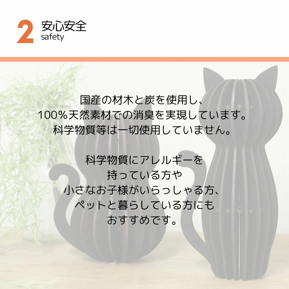 自然素材100%:炭の力で猫のニオイや湿気を軽減