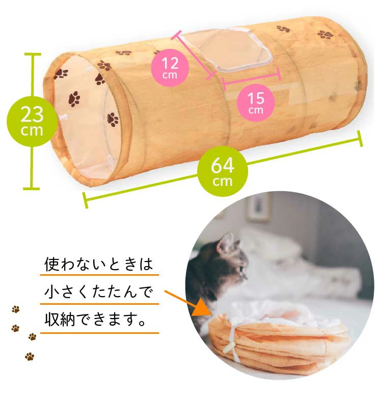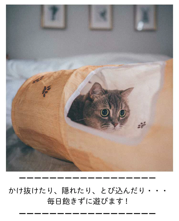 このトンネル1本で、猫の本能を刺激し、運動不足対策やストレス解消になるだけでなく、お部屋のスペースも圧迫しない。