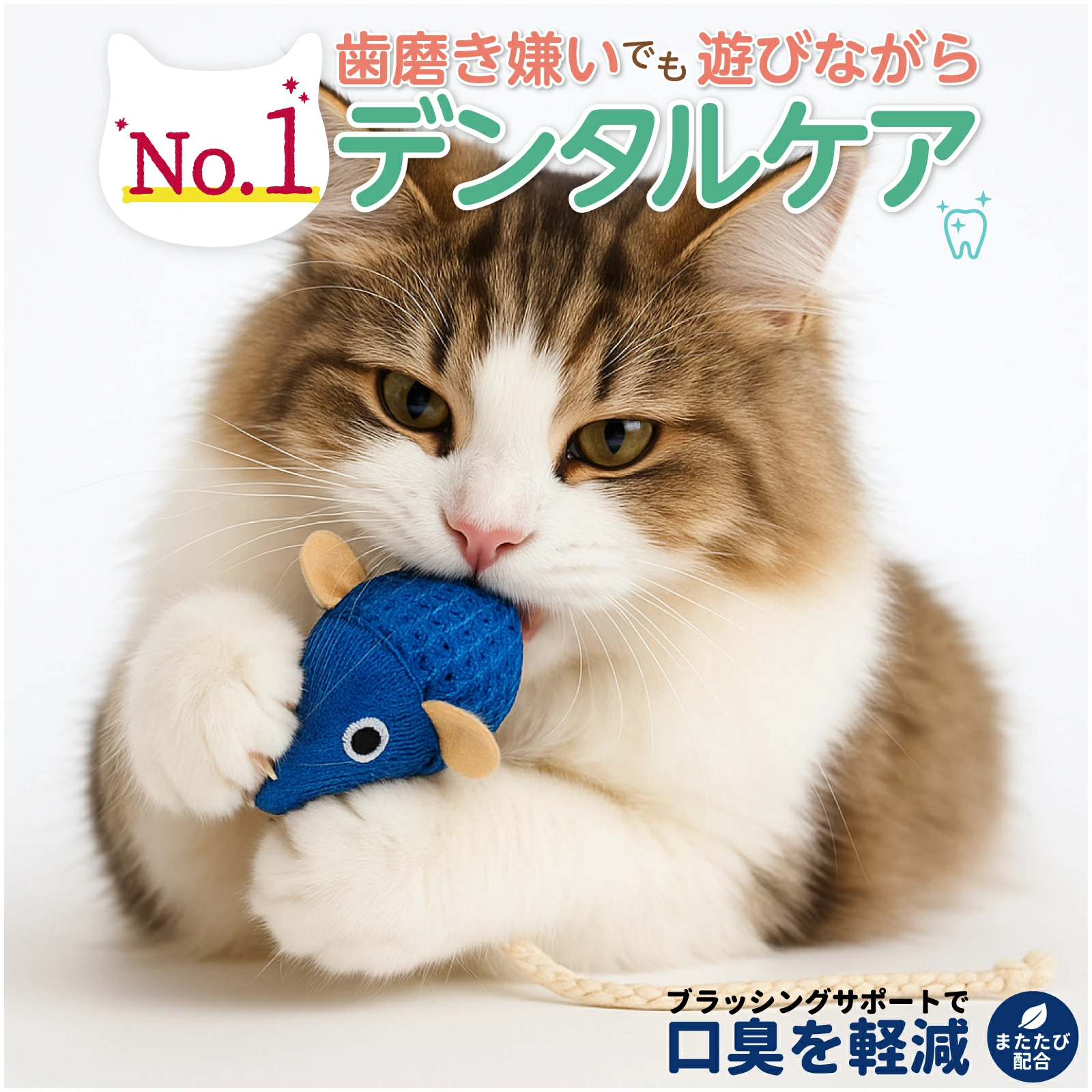 猫ちゃんがおもちゃを咥えることで汚れを絡め取り、自然とキレイになっていく仕組みです。