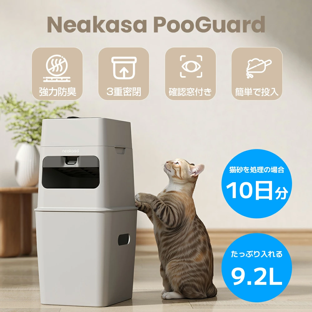 猫砂ゴミ箱PooGuardは、三重密閉構造・多層防臭袋・大容量投入口という機能を備えて、臭い・散らかり・交換頻度という三つの悩みにしっかり応えてくれます。