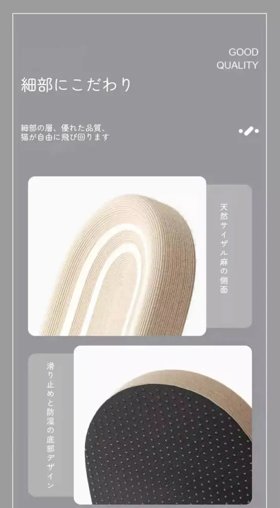 • サイザル麻は硬さとざらつきがあり、猫の爪をしっかりとキャッチできる