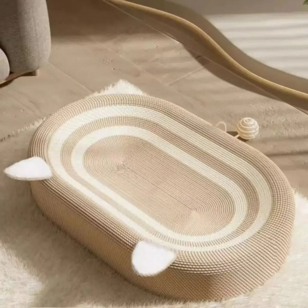 爪を研ぐ用途はもちろん、休憩スペースや遊び場としても活躍する万能なスクラッチパッドです。