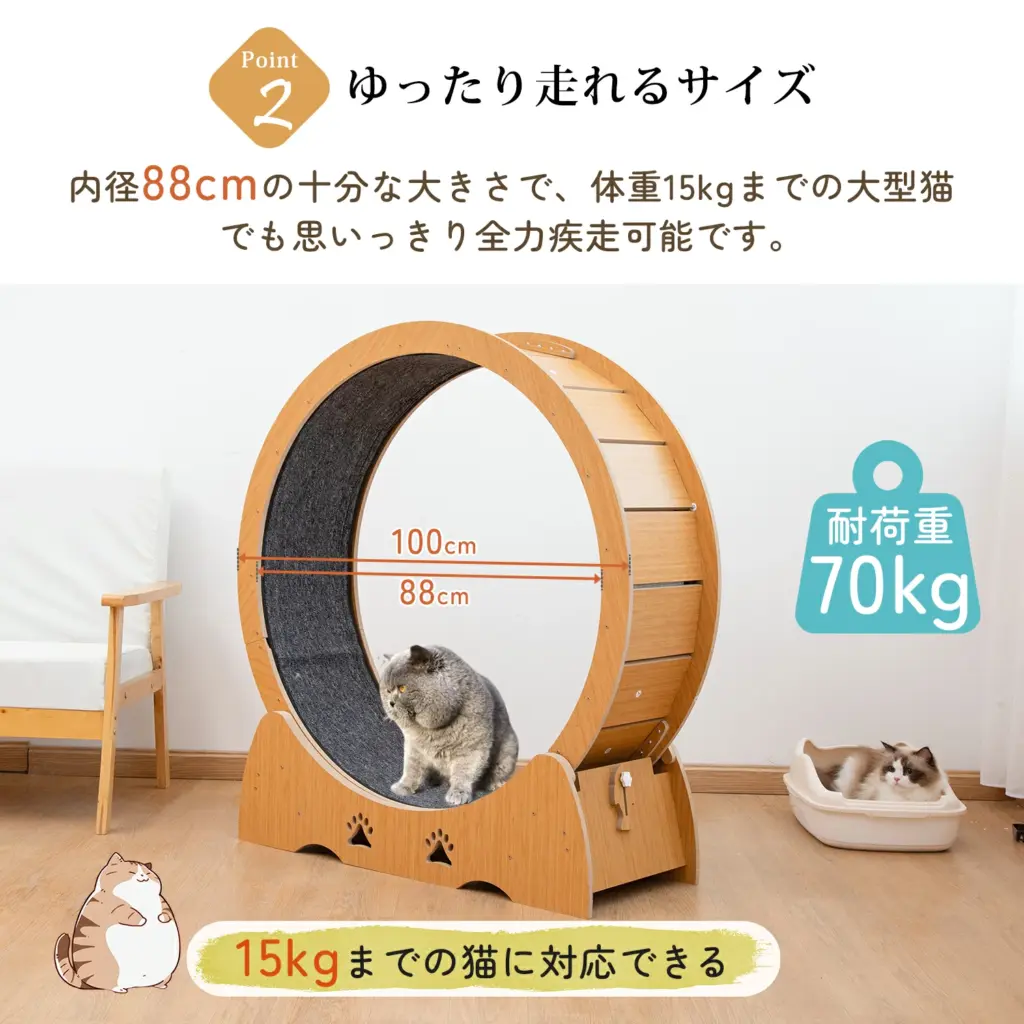 - 成猫・中型猫・体重のある猫 — ホイールの耐荷重が気になる場合でも安心