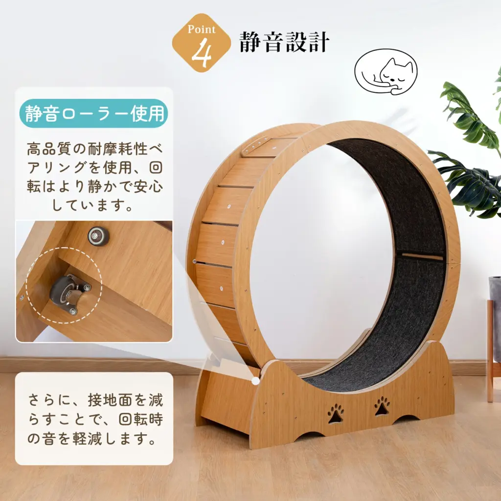 このキャットホイールは、自走式で静かに回る猫用ルームランナー。