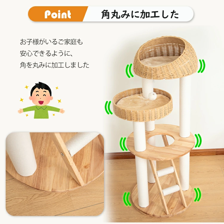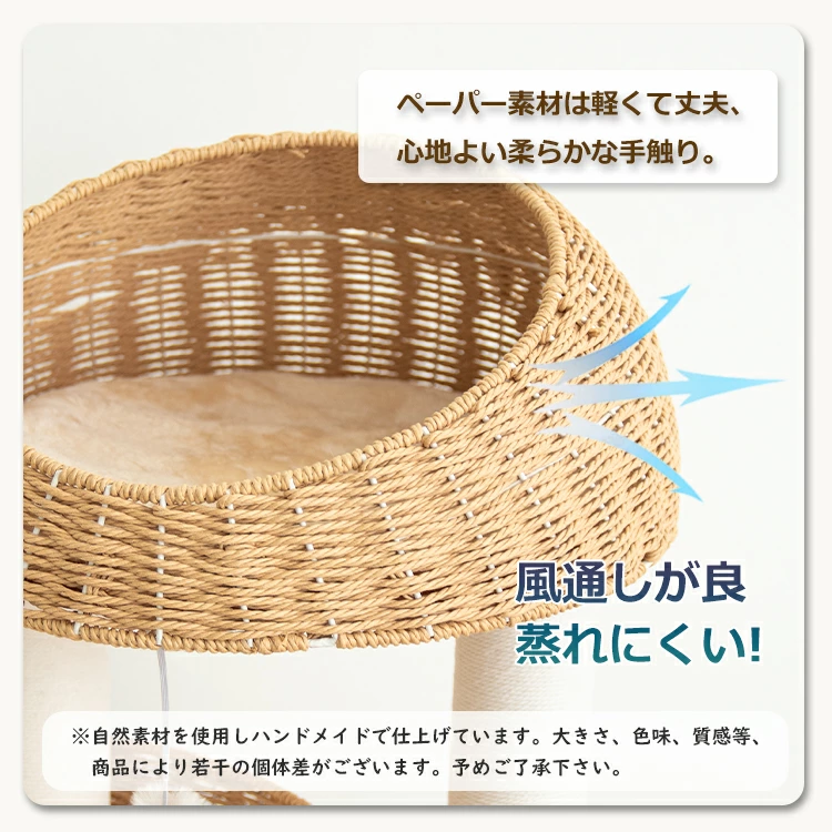 コンパクトでおしゃれな手編みかごのキャットタワー