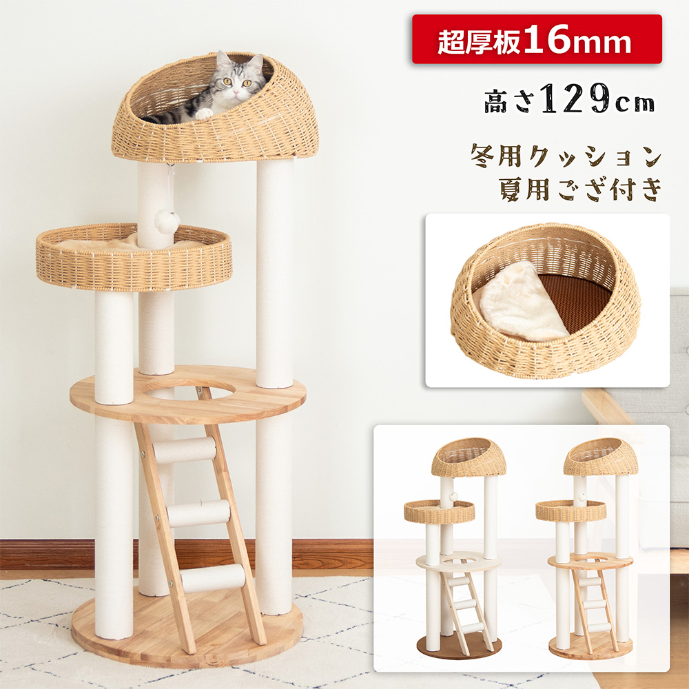 コンパクトでおしゃれな手編みかごのキャットタワー
