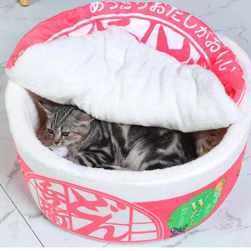 猫がベッドに入ると、まるで小さなカップうどんの中にスッポリ入ったように見えるため、SNS映えもバッチリです。