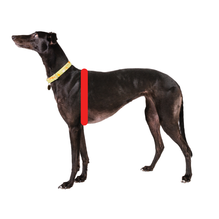 この部分を測ることで、犬の体にフィットするハーネスサイズが分かります。
