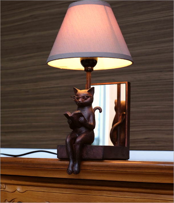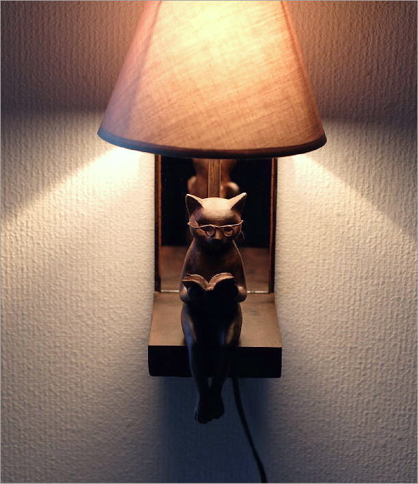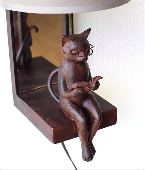 ただの動物モチーフ照明ではなく、読書するネコというユニークなデザイン。