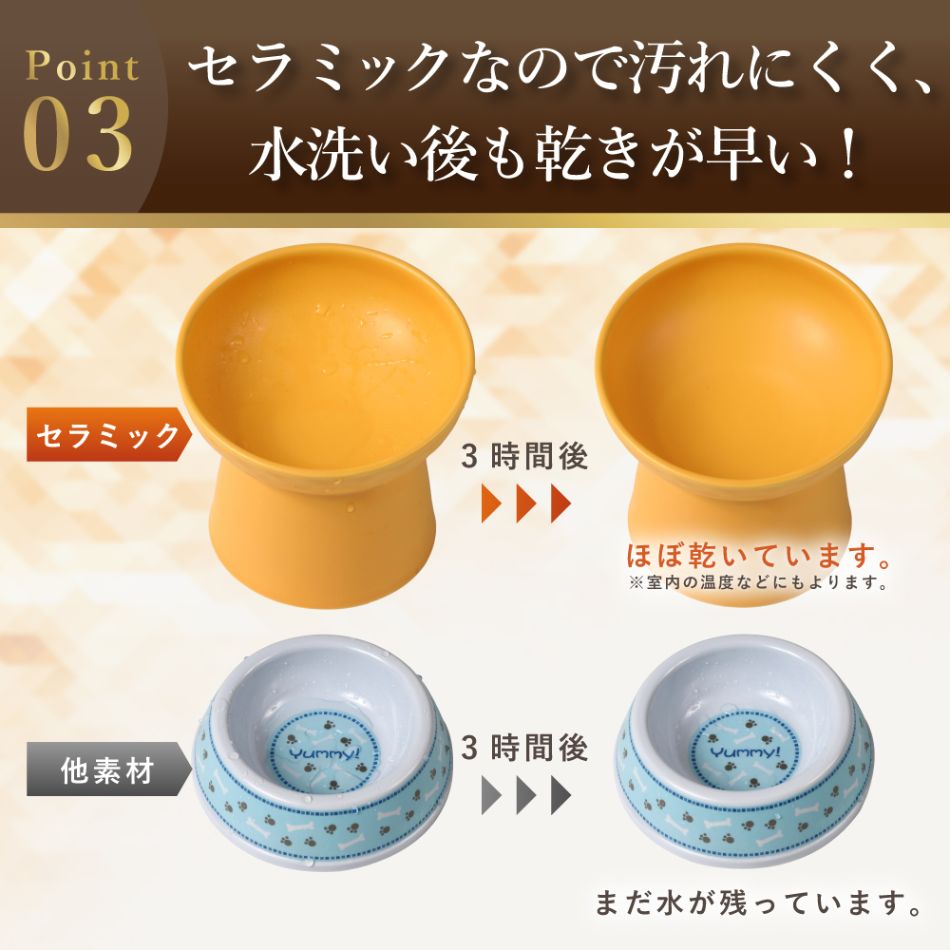 さらに、ボウルに適度な高さがあることで、シニア猫や足腰が弱い子にも優しい設計。
