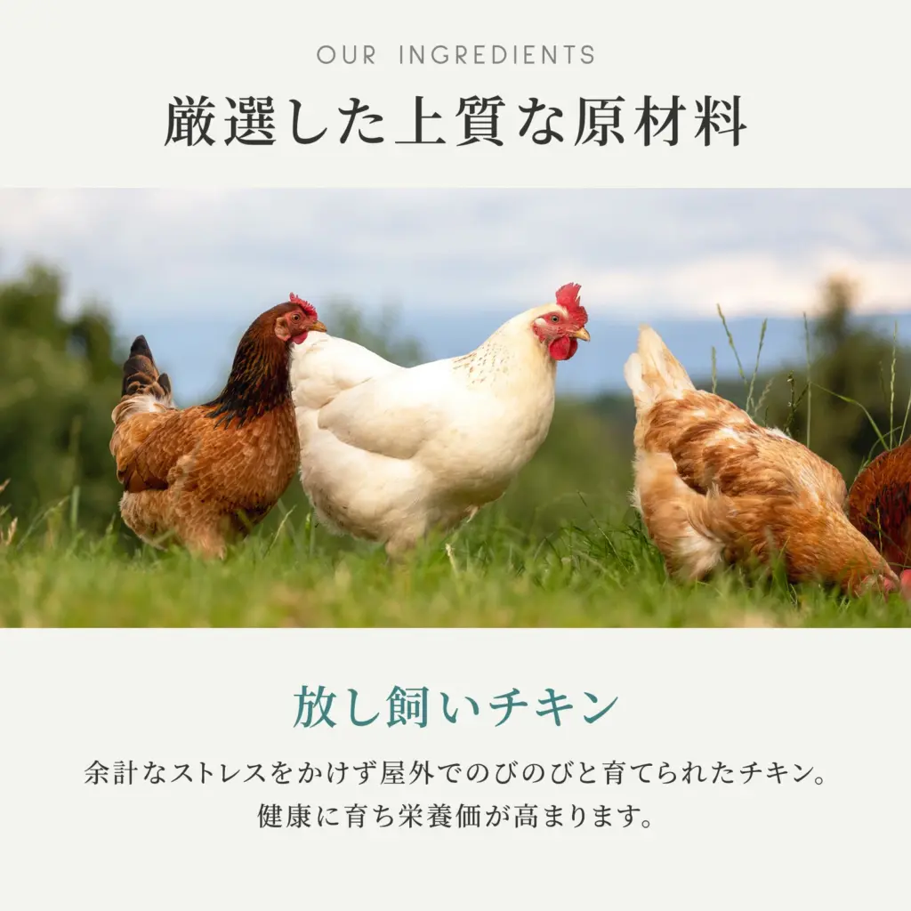 主原料は良質な動物性タンパク質(チキン/フィッシュ等)