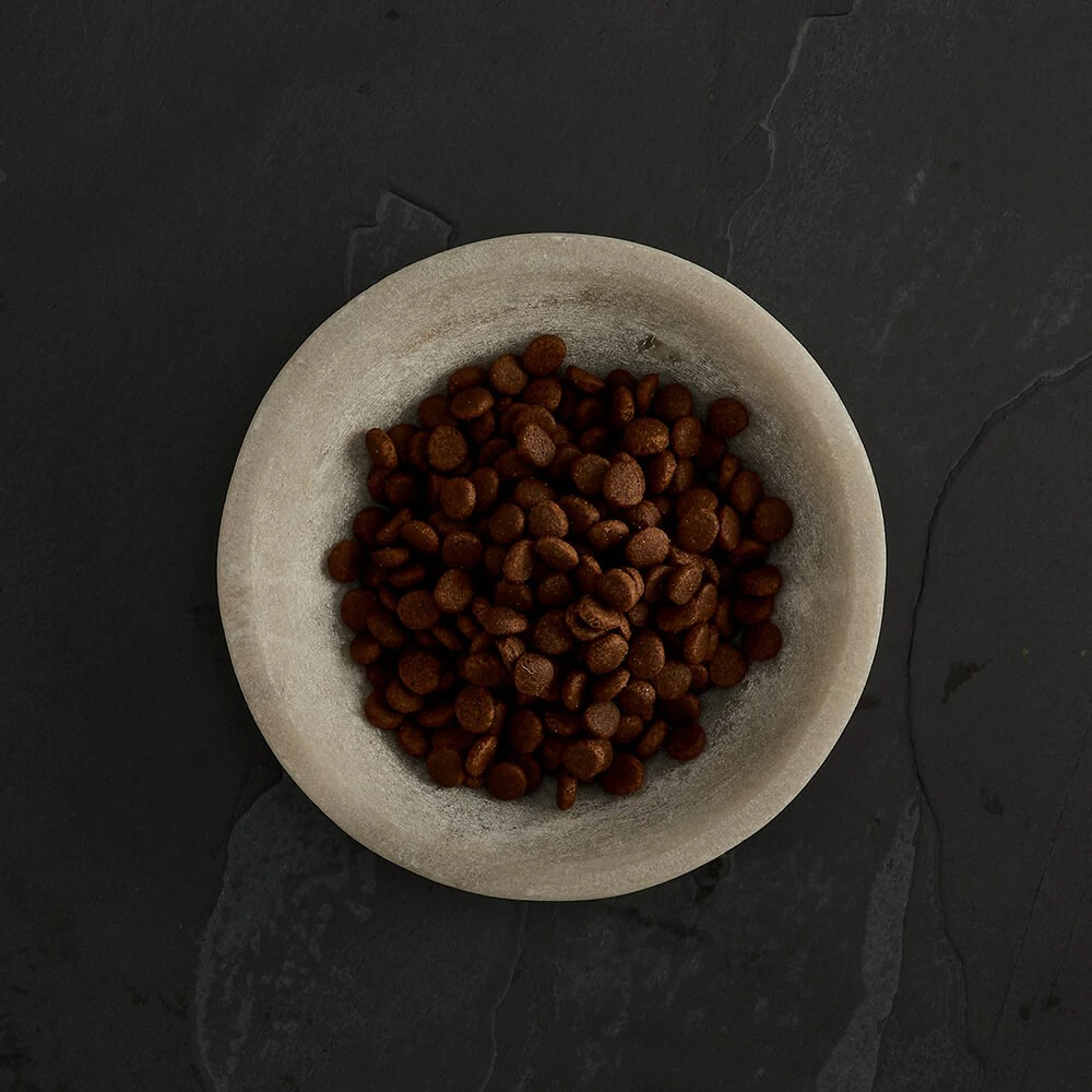 小粒〜中粒の設計は成猫から高齢猫まで口に運びやすく、噛み砕きやすい食感は歯や歯茎への負担も考えたつくりです。