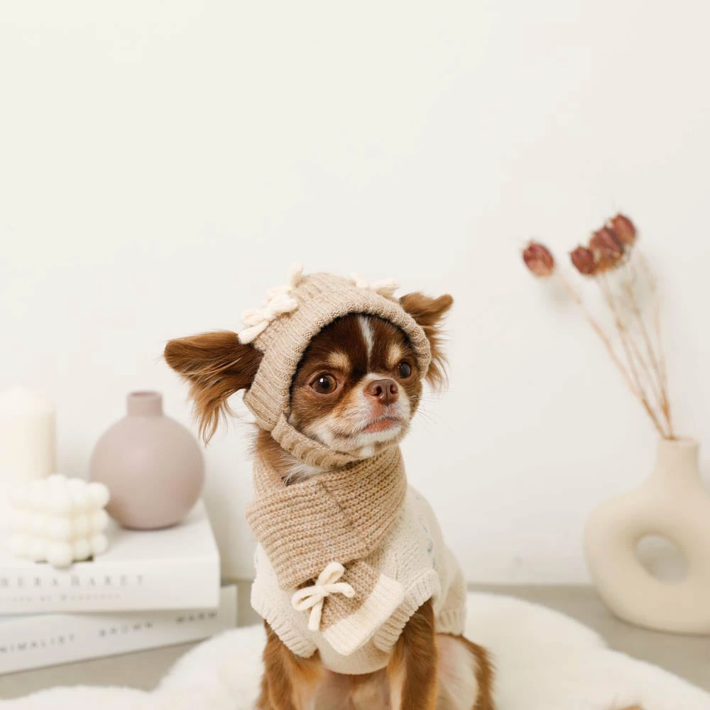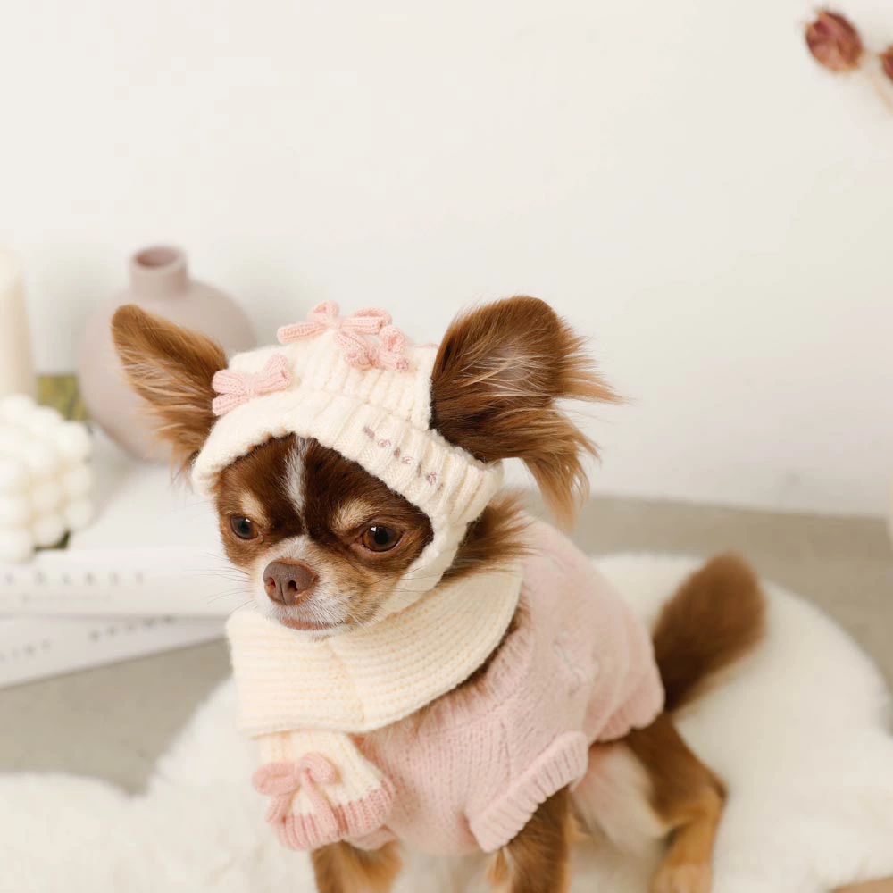 顎の部分にはニットループが付いているため、頭の小さい愛犬ちゃんでも脱げにくくになっています。