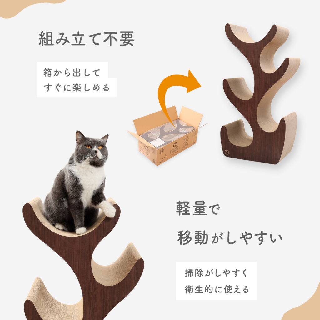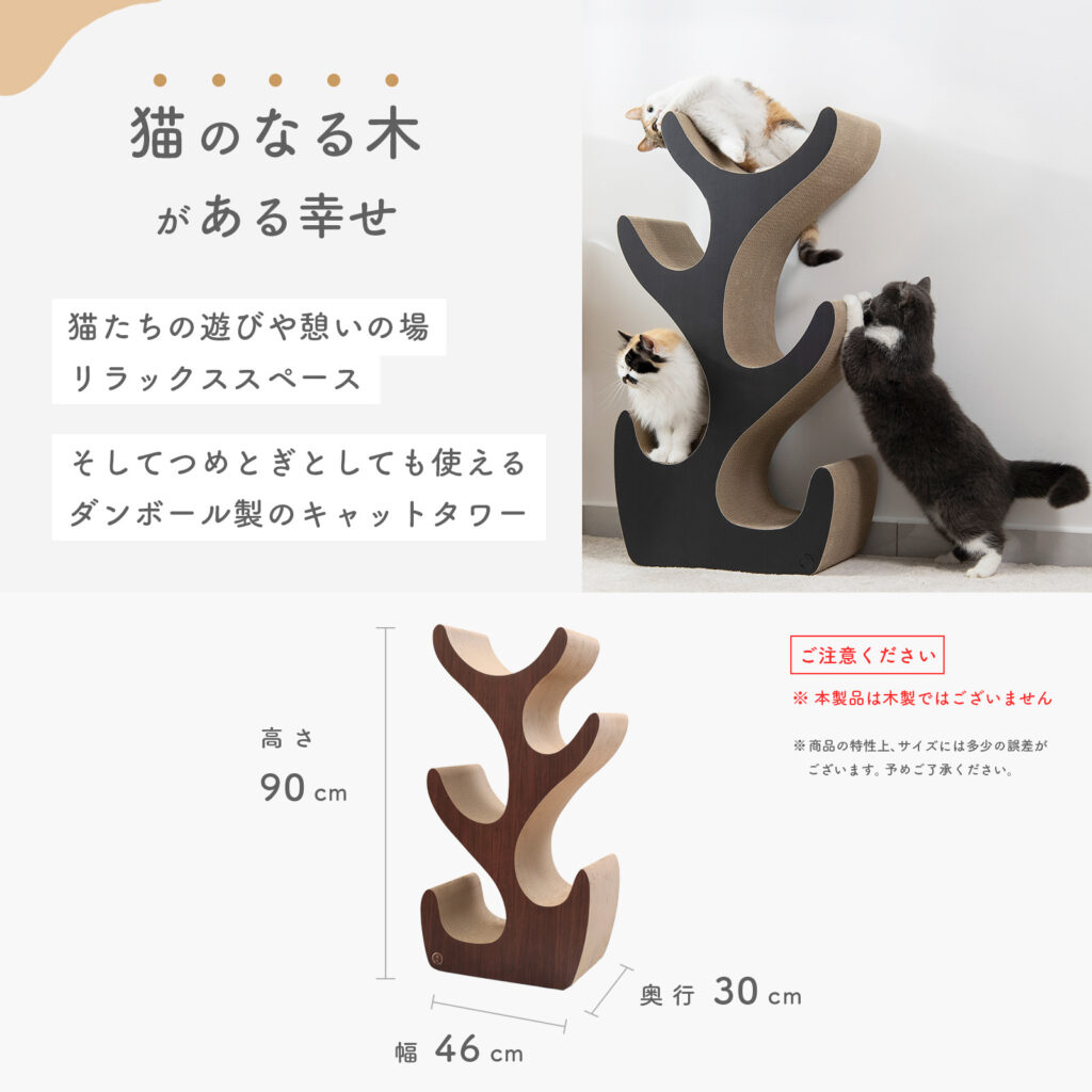 この「ツリーつめとぎ」は、つめを研ぐための場所だけでなく、猫が“木登り”本能を発揮できる場所でもあり、遊びと休憩を両立させたキャットタワーです。