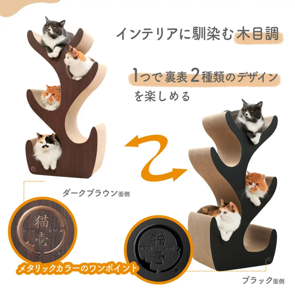 necoichi キャットツリーは、両面で異なるデザインが施されている点も魅力的。
