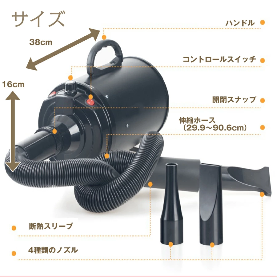 長毛犬や大型犬でも安心して使える十分なパワーがあります。