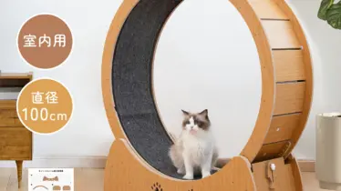 室内猫の運動不足対策におすすめなキャットホイール。自走式・静音設計で、お留守番や多頭飼いの猫も安心。狭い部屋でも設置可能♪