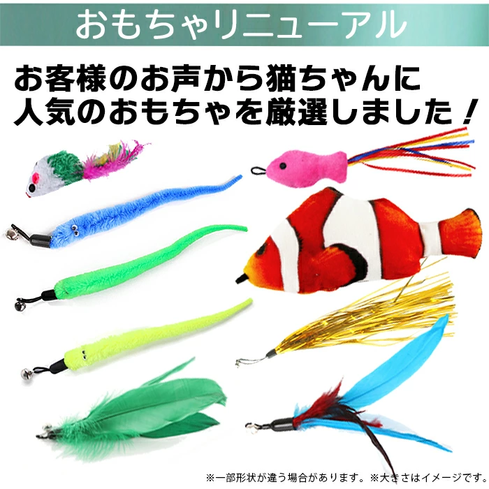 【素材・材質】オモチャ:羽毛、ポリエステル等/竿:EVA樹脂、ナイロン糸